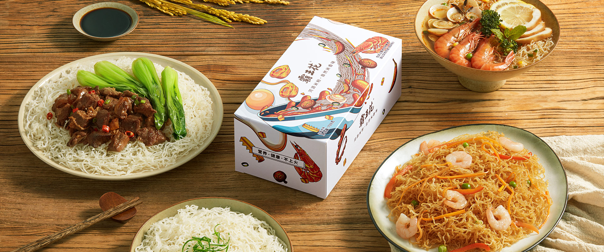 將米粉放入沸水中煮2 - 3分鐘后,撈起瀝干,根據個人口味添加配菜,一起放入托盤中,沸水蒸5~8分鐘即可食用。